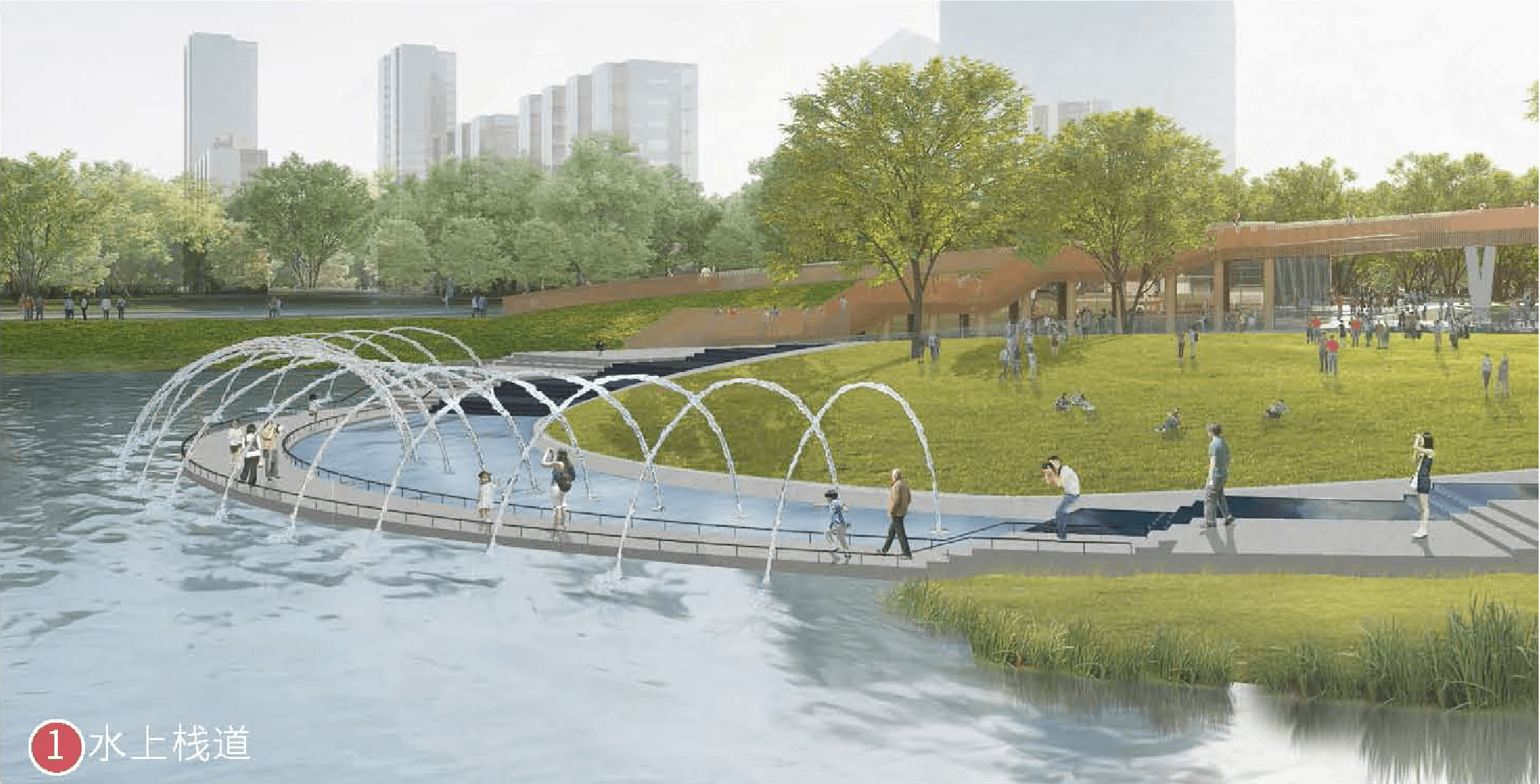“鹿鳴公園將造園的理念引入設計之中,以‘鹿’作為視覺符號,公園主入口的鹿歸橋以‘鹿角’為設計靈感,橫架于湖面之上,穿越林間、湖面、濕地,在景觀美學的勾勒間,釋放園區的獨特魅力。”周波說。