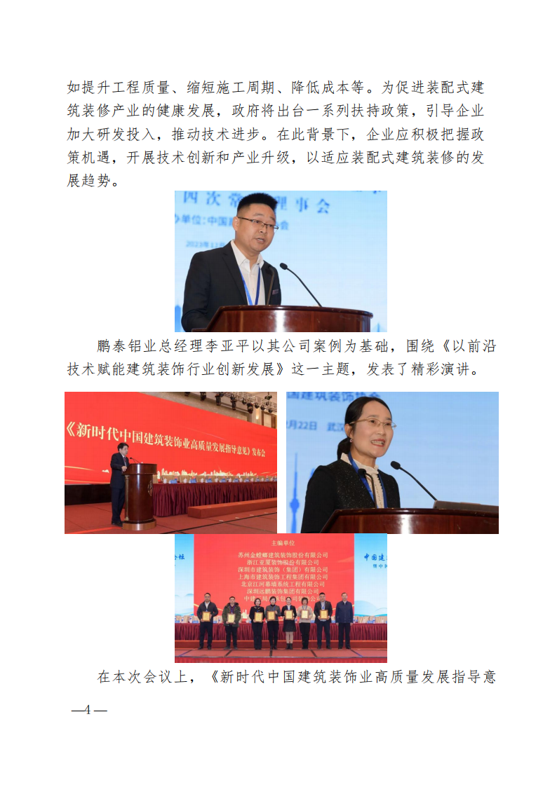 鵬泰鋁業總經理李亞平以其公司案例為基礎,圍繞《以前沿技術賦能建筑裝飾行業創新發展》這一主題,發表了精彩演講。